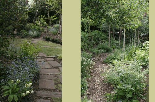Summer interest is provided with shade tolerant geraniums, oak leaved hydrangeas and ferns, followed by stunning autumn leaf colour. Silhouettes of winter soon give way to early snowdrops and the seasons begin again.